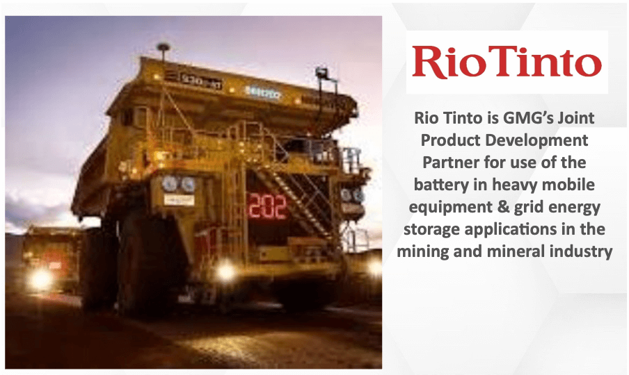 Nov 2023Rio Tinto and GMG Partnership Video Launched https://graphenemg.com/rio-tinto-gmg-battery-partnership-video-launch/